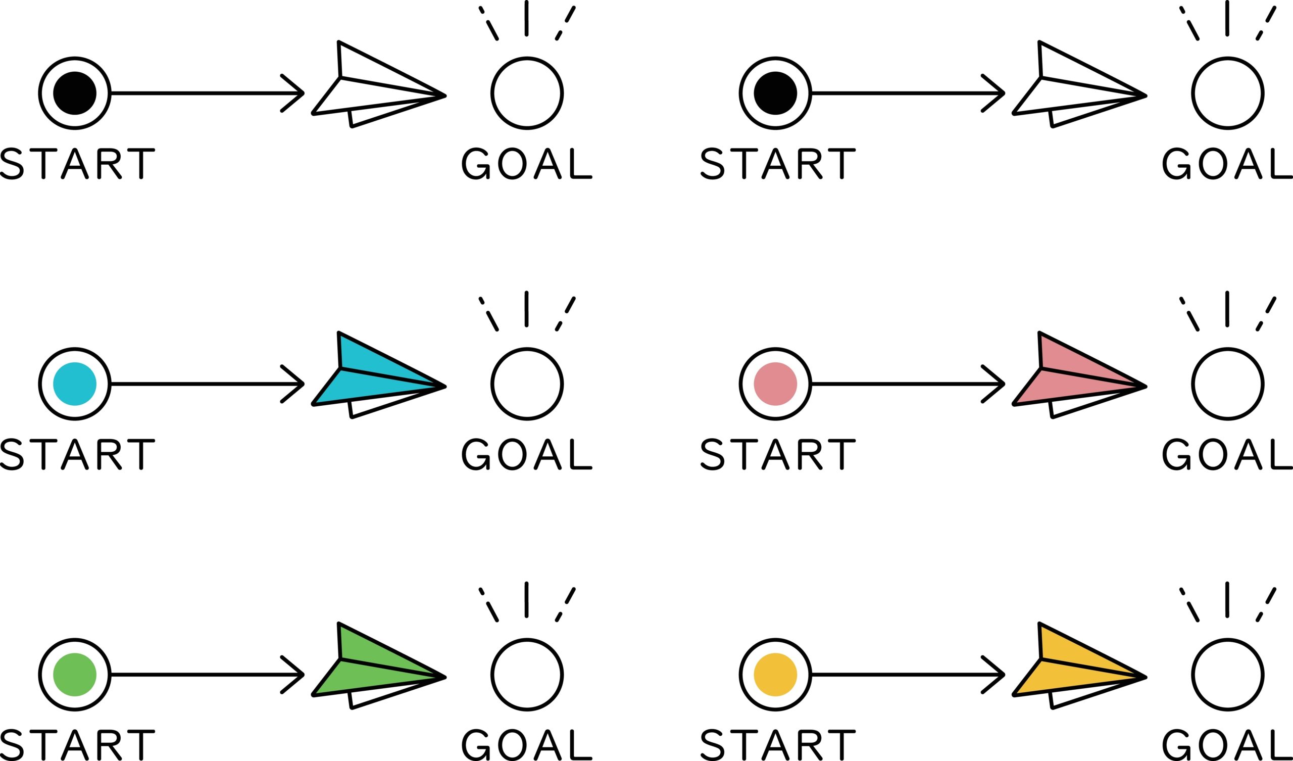 Paper,Airplanes,In,Various,Colors,Flying,From,The,Start,To